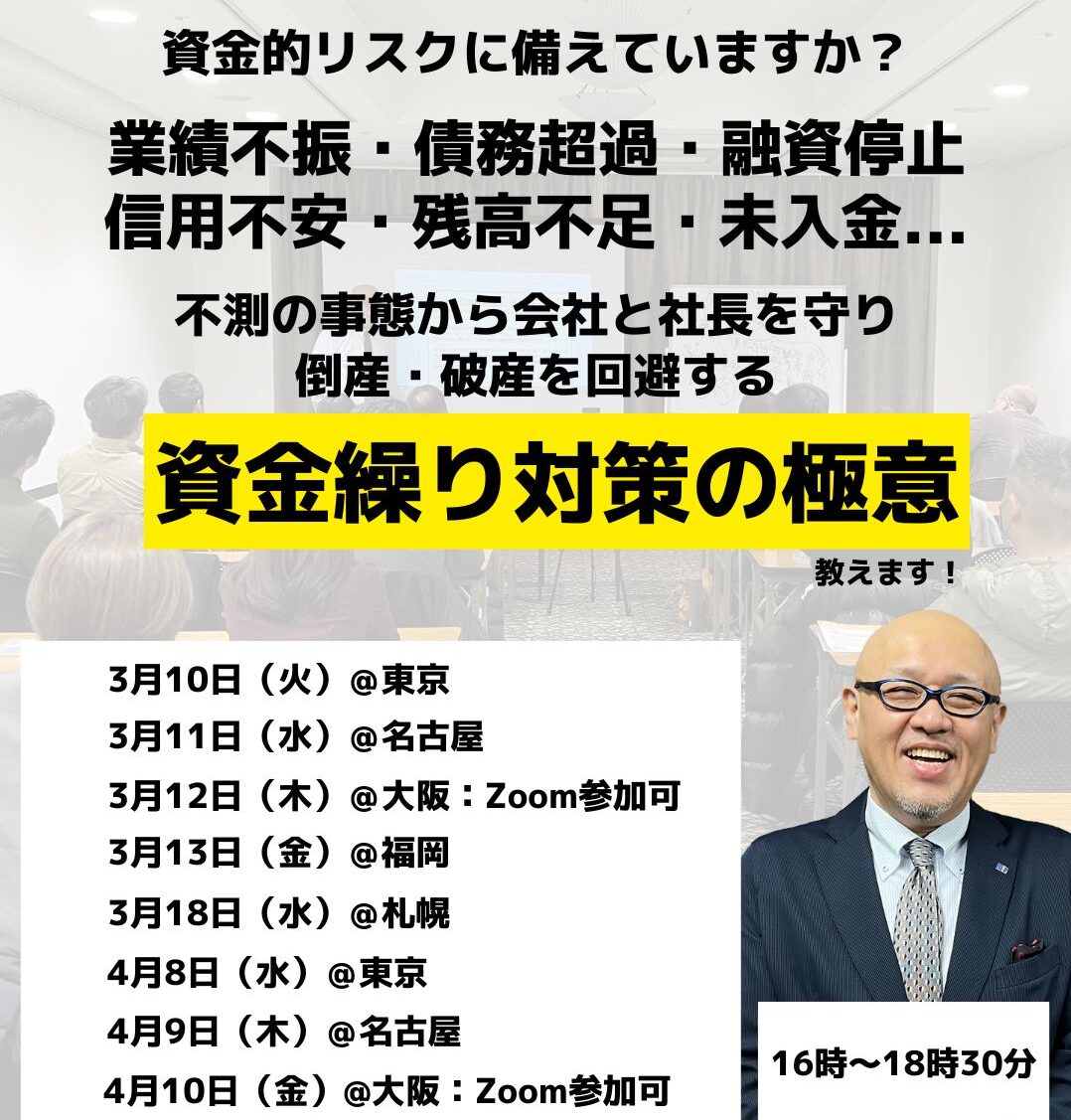 などなど、今すぐできる資金リスク対策ノウハウ満載のセミナーです。