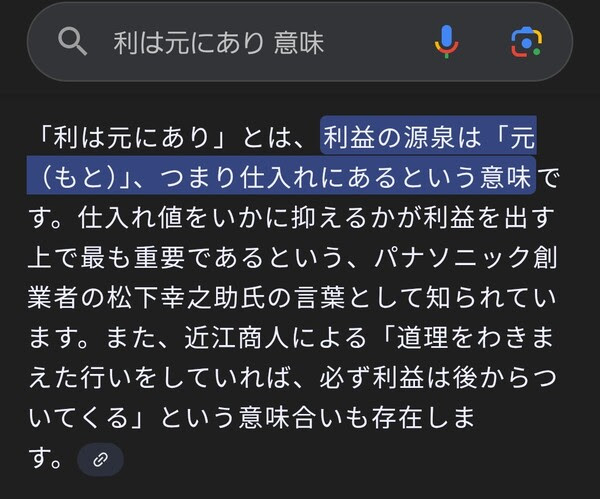 「利は元にあり」とは持つ下幸之助さんのお言葉。
