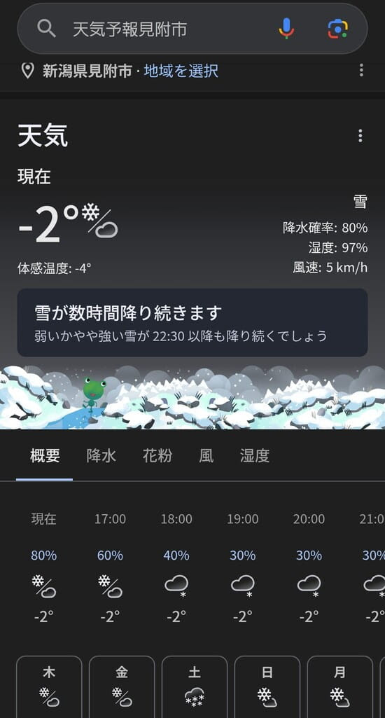 新潟地方が寒波の影響で気温は氷点下。